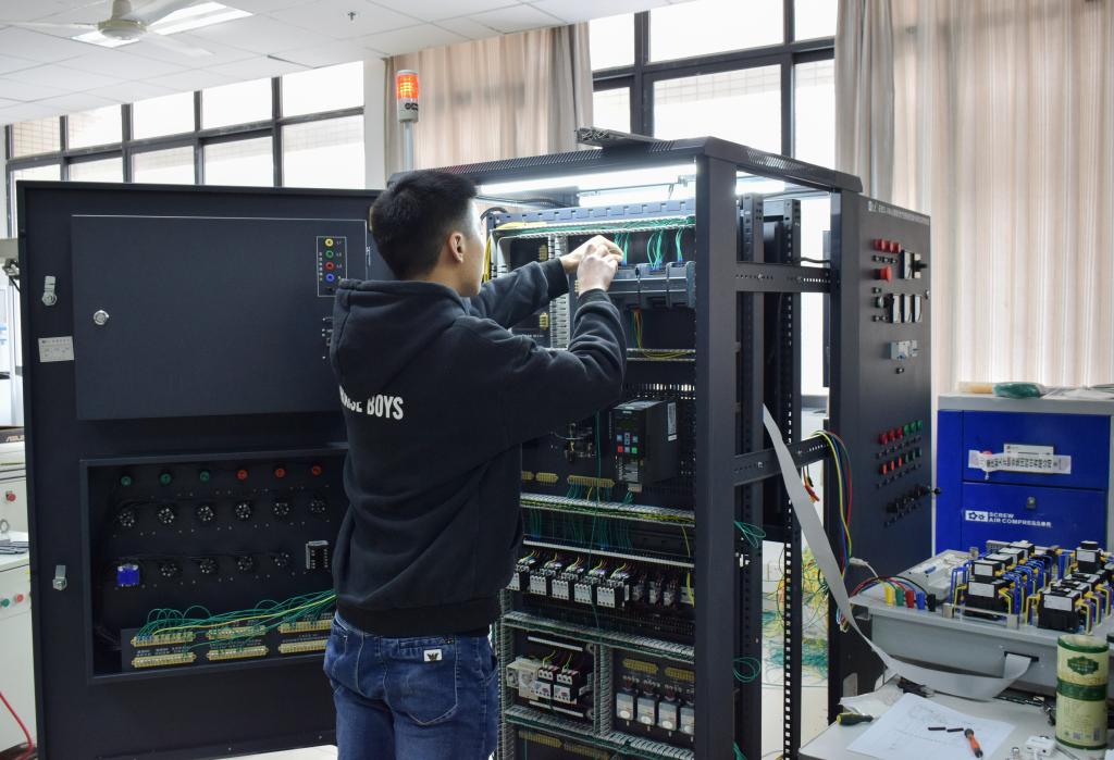 2019年元旦开始,为备战“巴渝工匠”杯重庆市第十二届高职学生职业技能竞赛“现代电气控制系统安装与调试”赛项,智能制造技术学院毛臣健和郭选明、郑益和马润,分别组建了参赛1队和2队。两队都发扬了艰苦奋斗的精神,老师利用了业余和部分寒假时间进行了认真指导,学生也努力学习刻苦训练,最终通过层层考核和选拔,筛选出了参赛学生。目前,两支队伍都在进行强化训练中,以期能在比赛中获得更好的名次。