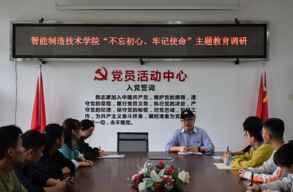 11月13日中午,智能制造技术学院领导班子开展“不忘初心、牢记使命”主题教育调研交流会,由学院领导班子成员主持并参与。